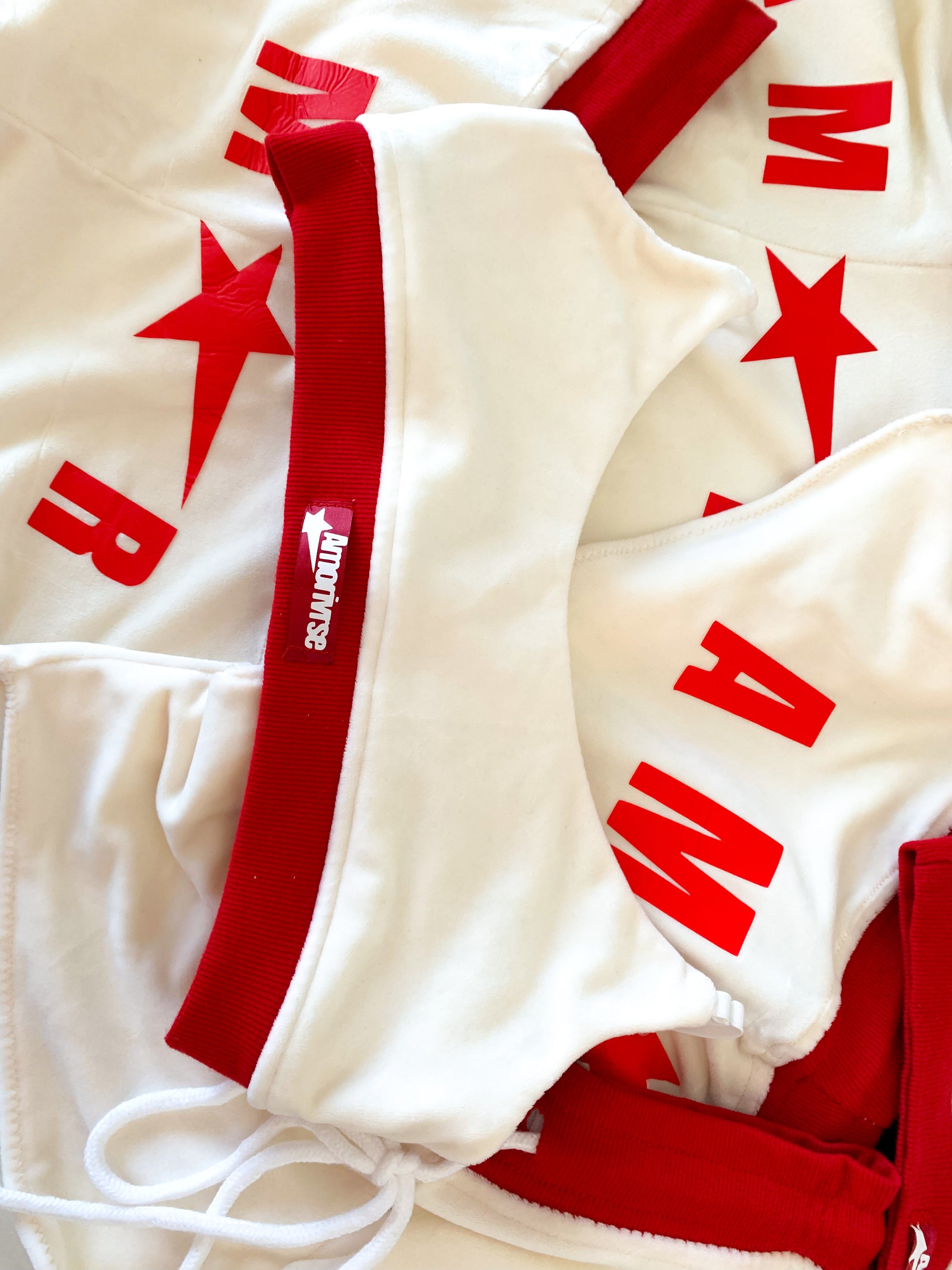 Limited edition cherry cheesecake shorts made with ultra soft velour with the new Valentine’s Day logo.